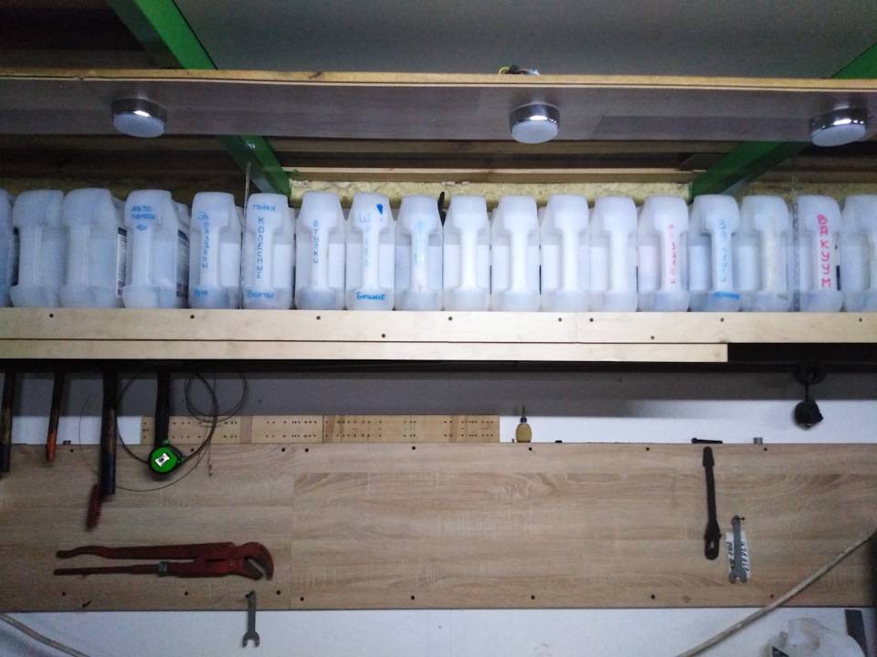 Всем привет!Всегда хочется добавь в гараж какие нибудь полочки, коробочки, да ещё и все разложить по местам, да так что бы ещё и найти необходимое было проще! Каждый художник своей мастерской и придумывает что то свое!Не могу сказать что я это придумал сам, это давно используется многими. Я лишь решил сделать все в одном стиле, что бы это хоть как то выглядело по приличнее чем разносортные коробочки. При этом это вариант легко доставать с полки, и так же есть ручка для переноса! Поэтому могу рекомендовать и вам подобную систему хранения по дешовке. Так как покупные системы все же стоят денег, а если нужно много контейнеров — то это уже вылазит в неплохую сумму денежных средств.