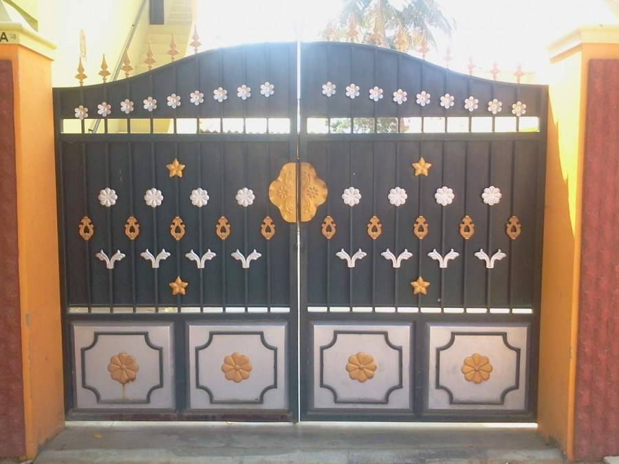 Обычно выгодно смотрится черная матовая эмаль. Отдельные элементы можно чем-либо выделить на черном фоне. Например, золотом или серебром. Полностью высохшая калитка навешивается на постоянное место. Проверяется работа изделия, устанавливаются замки и козырек.