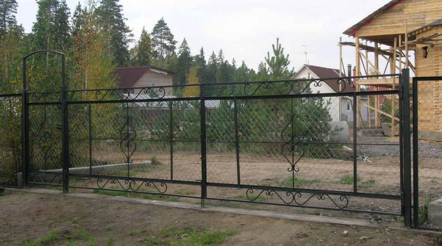 Такие модели обычно устанавливаются, если высота дома небольшая. Ворота и калитка несут сугубо декоративную роль, они не защищают двор от нежелательных взглядов и проникновения. Такие конструкции принято устанавливать в охраняемых коттеджных поселках или на внутренних территориях. Декоративные ворота отличаются изяществом, в них присутствуют интересные дизайнерские черты.