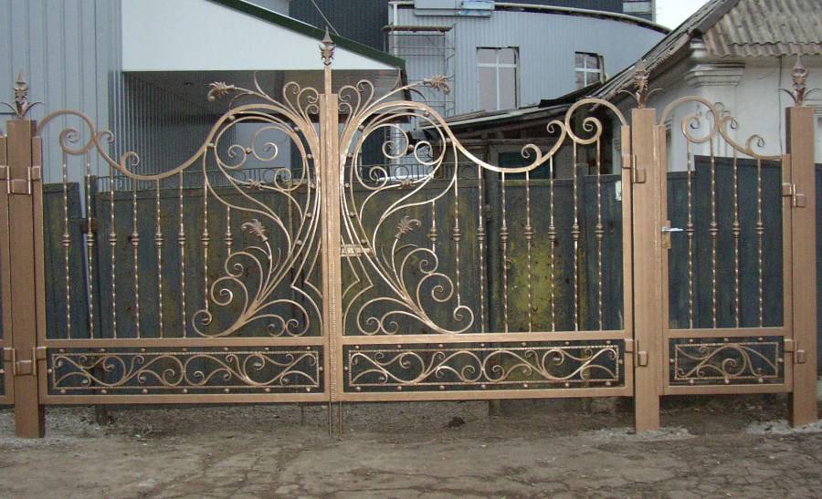 - Украшение полотна коваными элементами. Их можно приварить к основному каркасу.