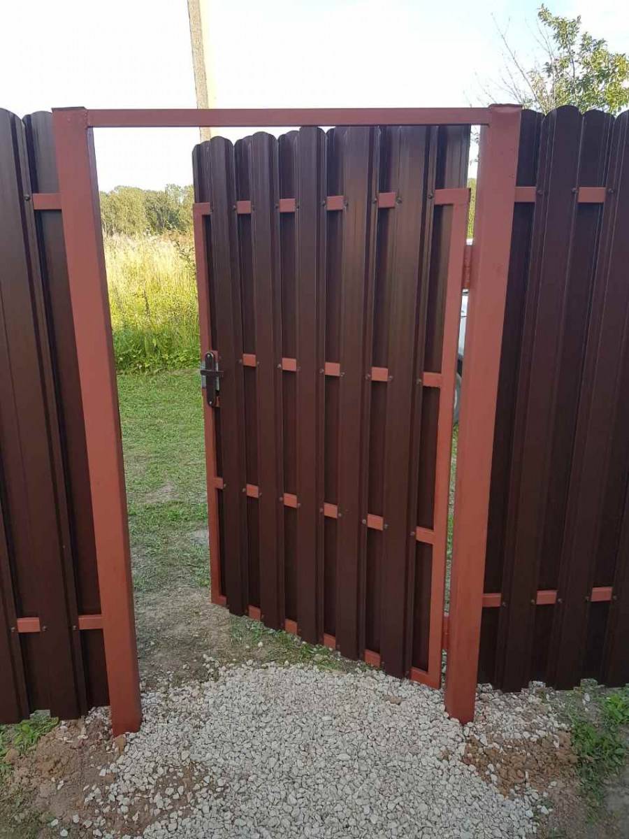 При умелом крепеже красивыми и долговечными станут ворота из профлиста. Это профилированные стальные листы с оцинкованным защитным слоем. Продаются разных цветов.