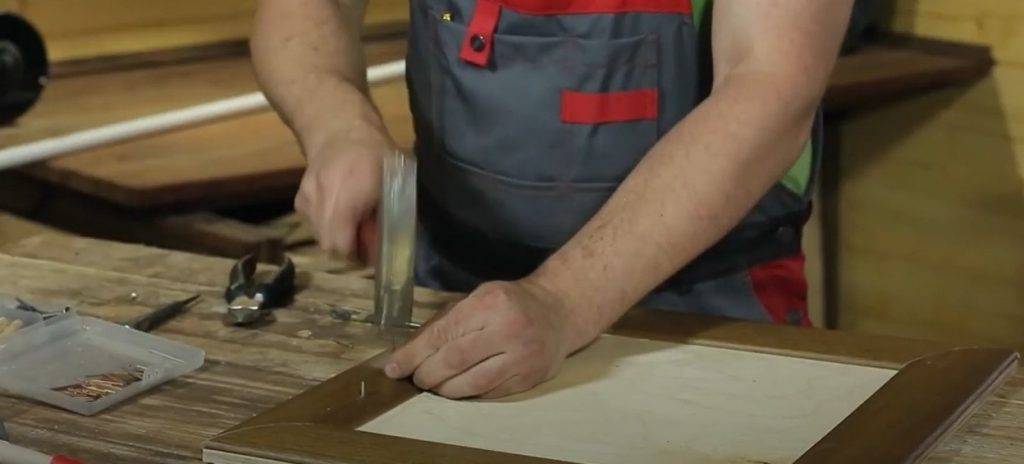 В случае, если торец гвоздя или шляпка на поверхности обрамления сильно бросается в глаза, можно воспользоваться восковым мебельным карандашом, который спрячет эти дефекты.