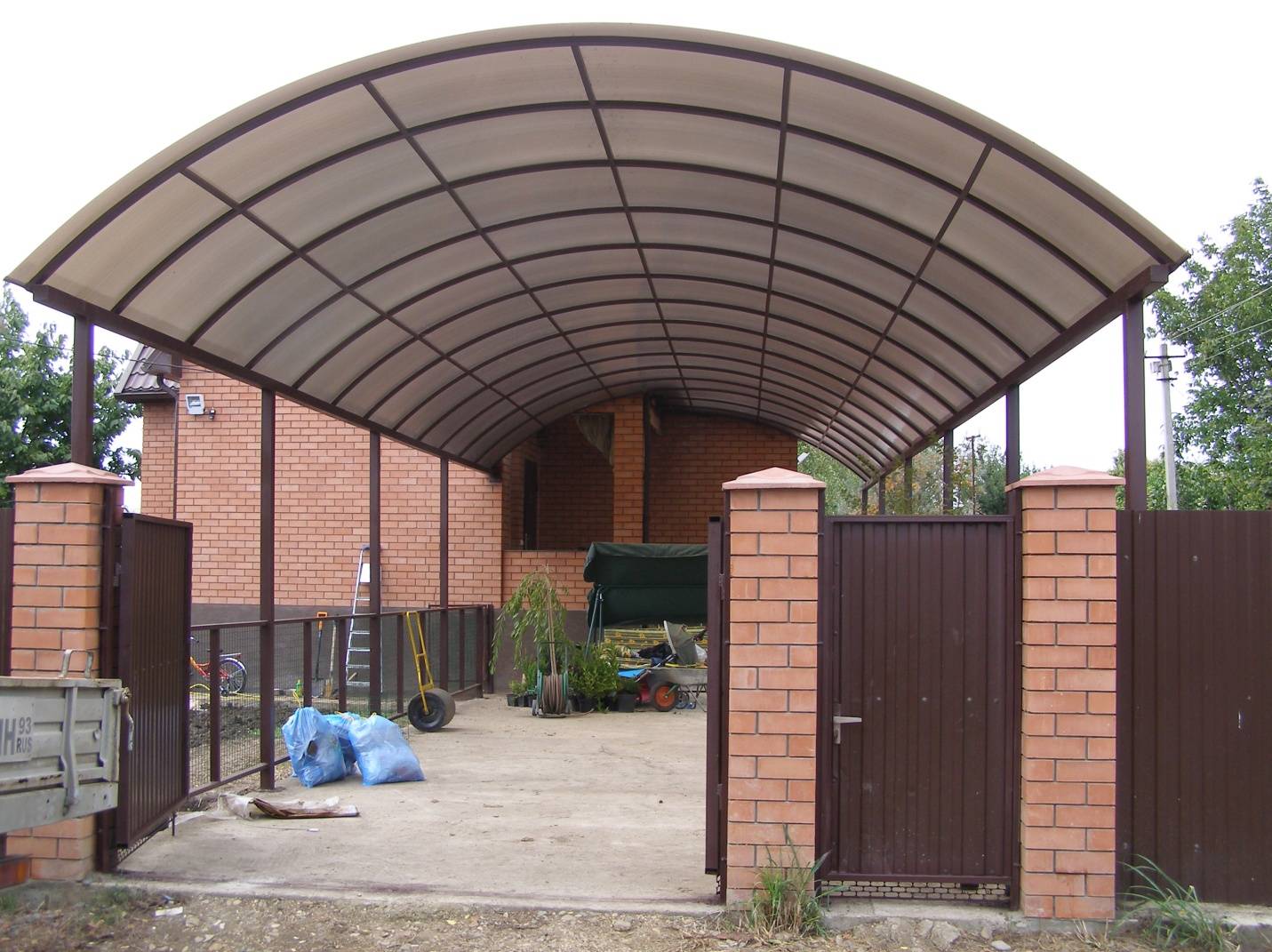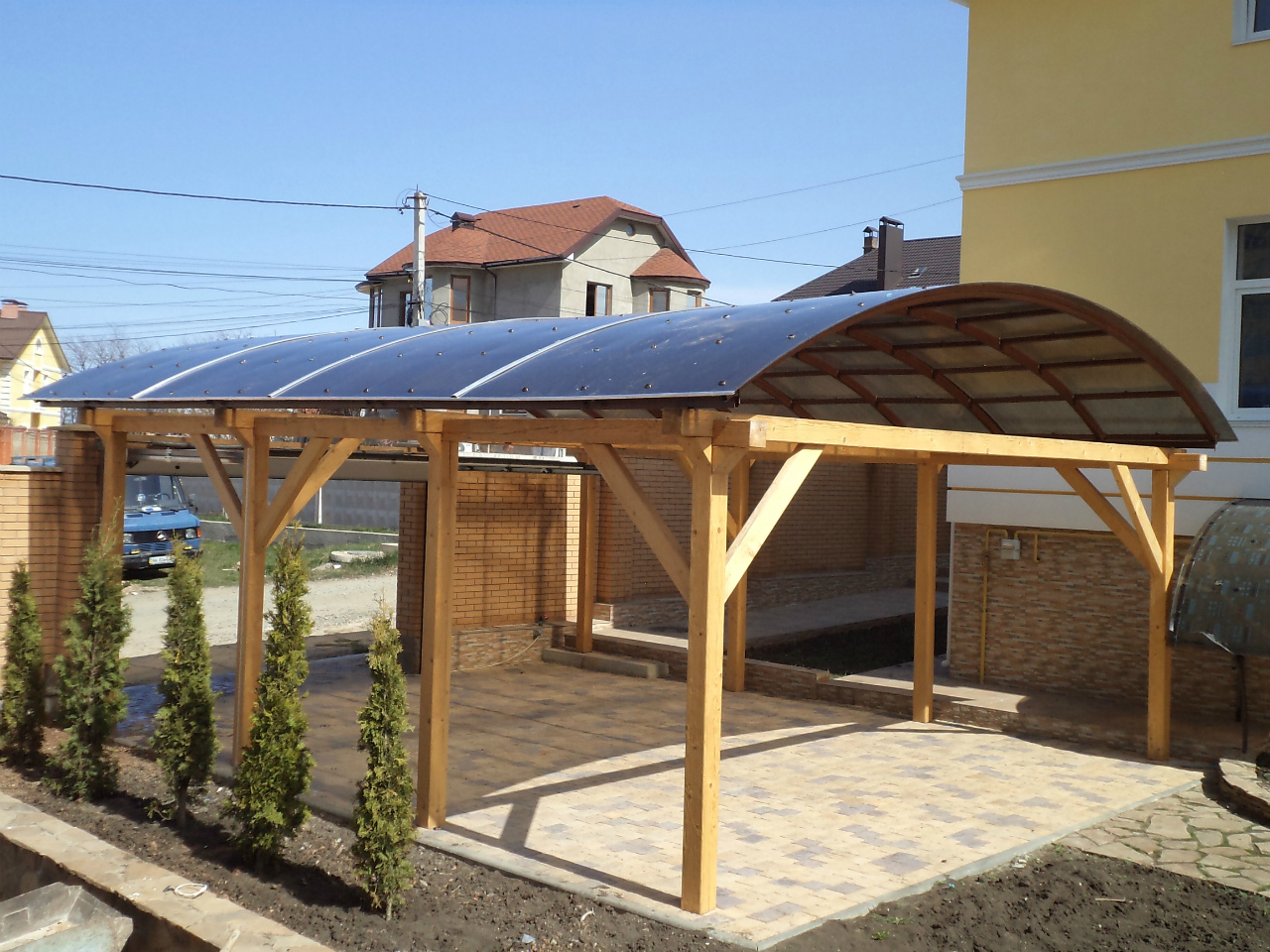 Как построить навес из поликарбоната для машины своими руками