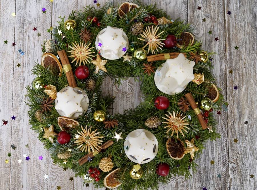 Как сделать новогодний венок своими руками на дверь