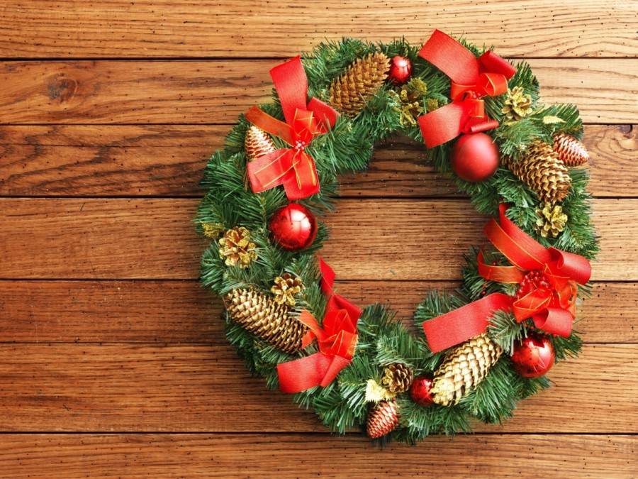 Как сделать рождественский и новогодний венок на дверь, мастер класс
