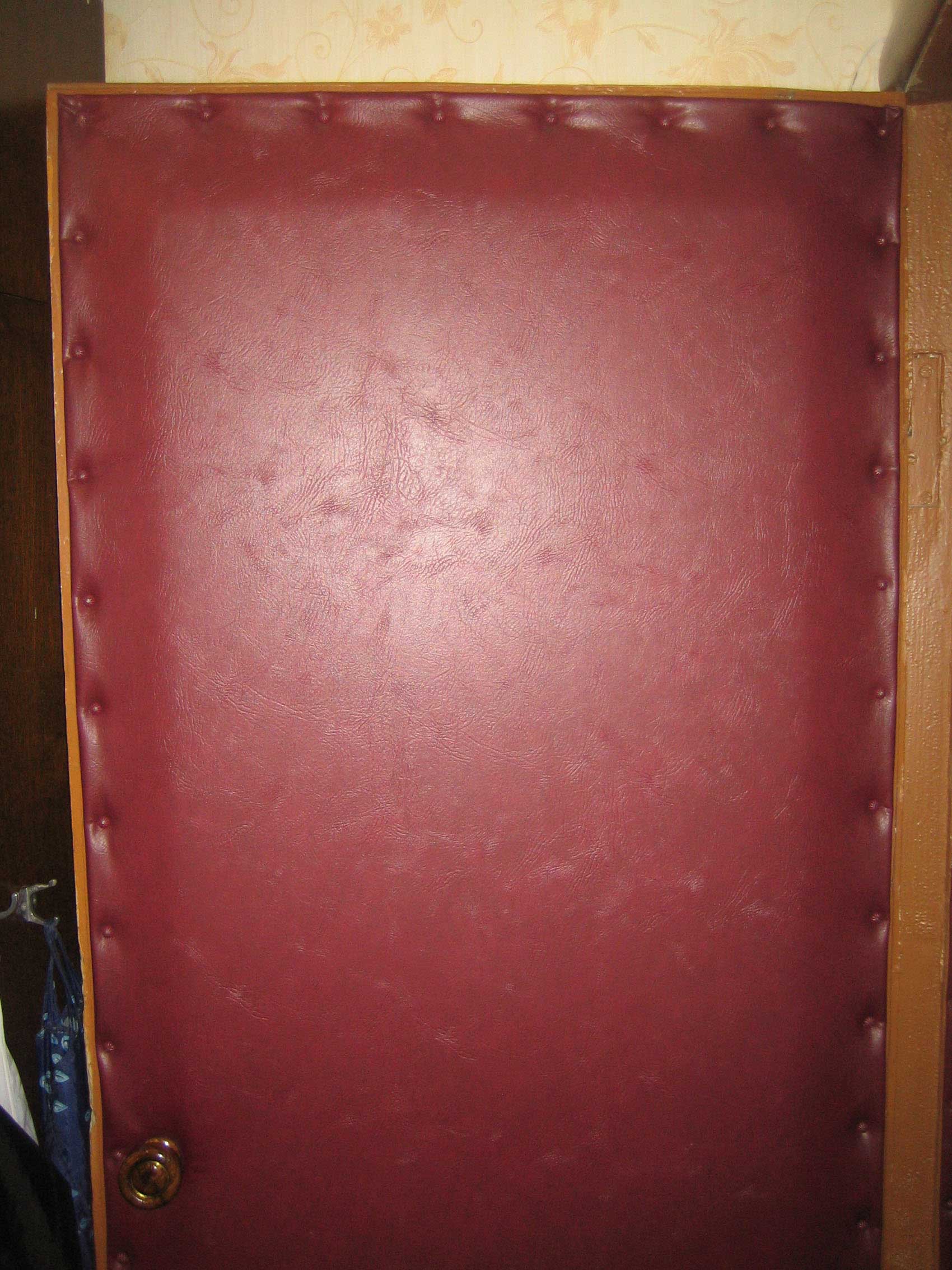 Этот вариант не самый лучший — поролон почти никак не влияет на звукоизоляционные свойства двери, а именно это порой очень важно. Кроме того, через 3-4 года он теряет эластичность, начинает слипаться, приходится делать перетяжку двери, хотя внешний вид кожзама еще вполне приличный