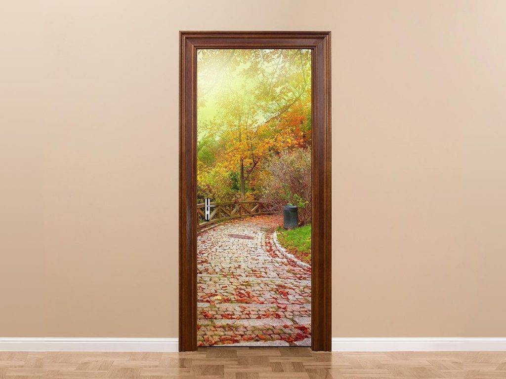 Во многих строительных магазинах можно встретить полимерные наклейки, которые фиксируются на гладкую и обезжиренную поверхность двери, создавая иллюзию красивого пейзажа и других интересных образов.