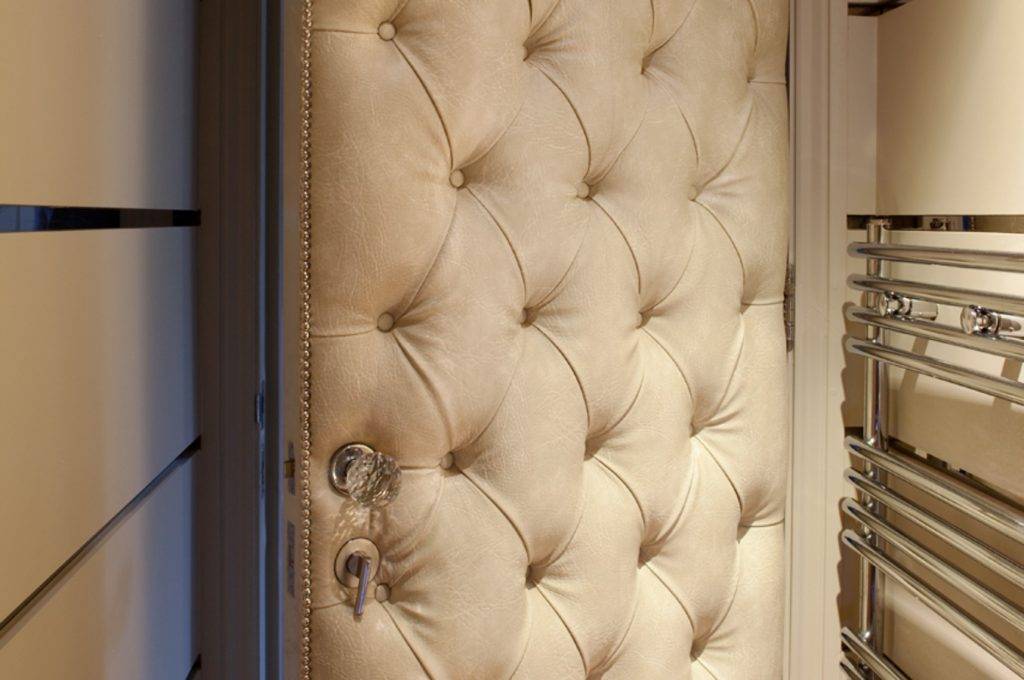 - Фигурная (каретная) обивка двери натуральной кожей – идеально подходит для классического интерьера.