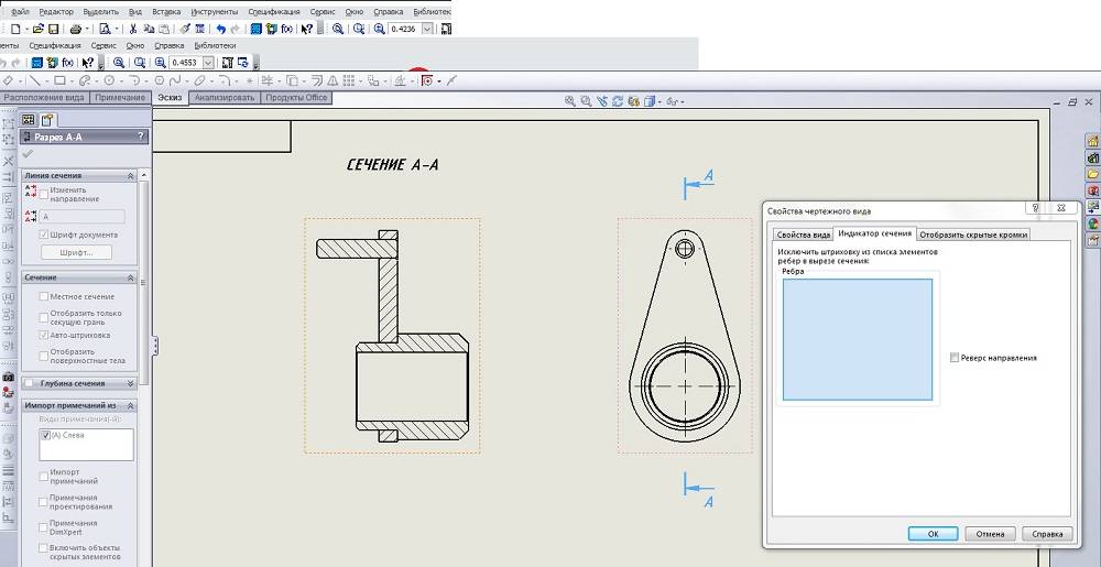 Рисунок 8. Как сделать разрез на чертеже в Солид Воркс