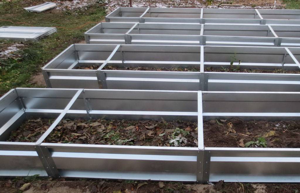 - обычные грядки серебристого цвета — это изделия из листовой стали, покрытые защитным слоем цинка;