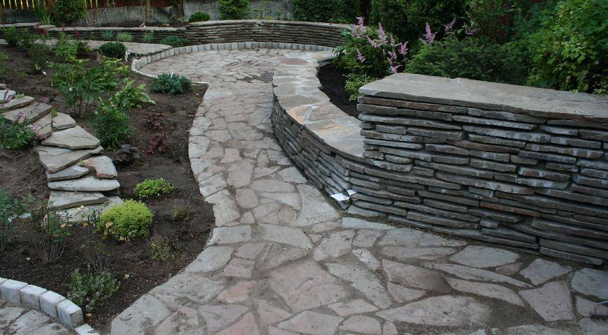 Обрамление посадок с помощью плитняка (Фото и сад: Наталья Исаенкова)
