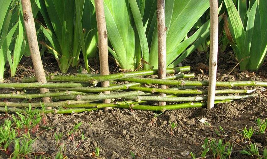 Изгородь из тонких веток или плетень из лозы вполне под силу сделать самому