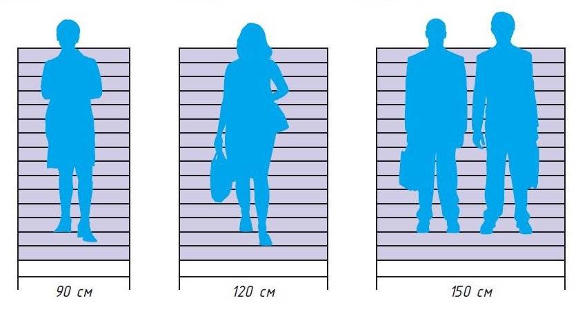 Ширина маршей и площадок определяет пропускную способность лестницы и зависит от требований пожарной безопасности (эвакуации) и предполагаемых габаритов переносимых вещей.
