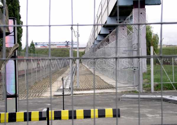 - Стойки козырькового заграждения, увеличивающие высоту и снабжающие препятствие для перелазов через сетчатую преграду.