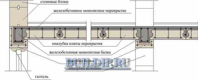 Железобетонный каркас состоит из объединённых в одно целое вертикальных колонн, горизонтальных ригелей и дисков перекрытия. Все элементы соединяются между собой при помощи выпусков стержней, которые связывают их в общую структуру. Определяющую роль в надёжности и долговечности Монолитно-каркасного дома играет качество армирования и бетонирования.