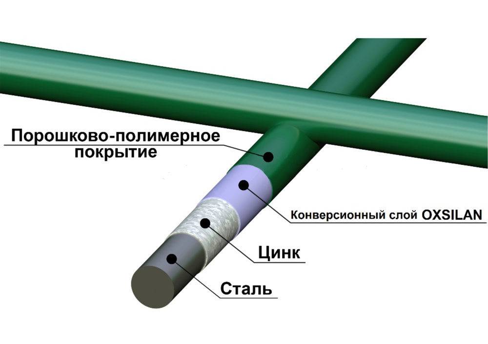 Полотна загородження виготовляються з дроту (сталь) діаметром 5 мм, що з’єднується за допомогою точкового зварювання. Паркан складається з таких елементів: