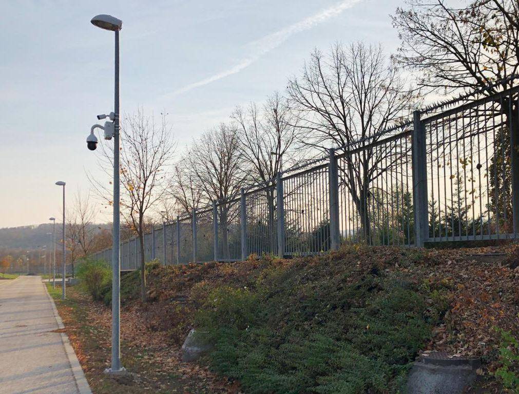 Оборудование может располагаться на ограждениях, световых опорах и даже деревьях рядом с периметром
