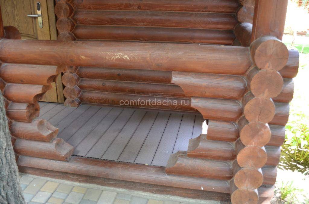 Но самым недорогим и легко доступным натуральным материалом, который используется для террас чаще всего, является сосна. Выбирая сосну помните, что эта древесина довольно чувствительна к циклам впитывания влаги и последующего высыхания. Такое воздействие вызывает деформацию и образование продольных трещин, поэтому, перед использованием для строительства террасы доски и бруса из сосны, необходимо тщательным образом пропитать все элементы будущей террасы.