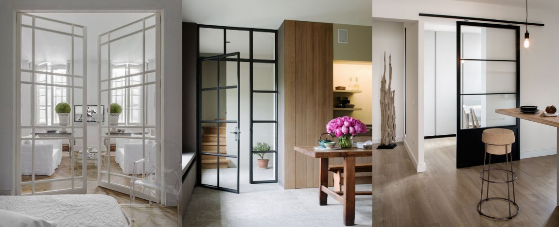 В классических интерьерных стилях хорошо приживутся конструкции, состоящие из нескольких обрамлённых стекол. Полотна из цельного стекла — больше про лофт, хай-тек и минимализм.