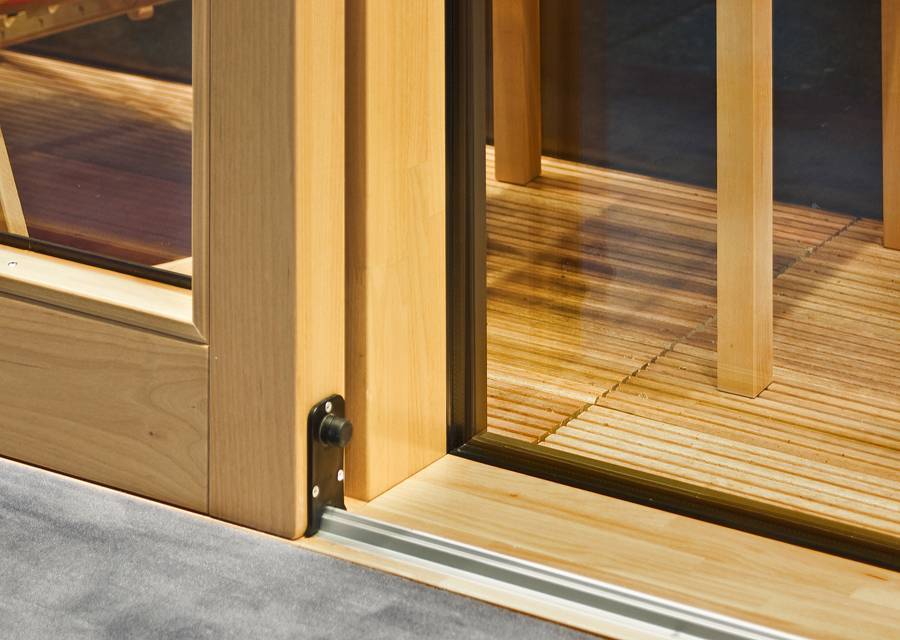 Конструкция выпускается либо с одной, либо с двумя направляющими. Наиболее легкими считаются системы с одной направляющей и в этом случае совершенно не будет видно порога. Но дверь с двумя направляющими обеспечивает отличную герметичность, защищая от проникновения холодного воздуха. Порог в этом случае минимальный потому как практически полностью утапливается в пол.