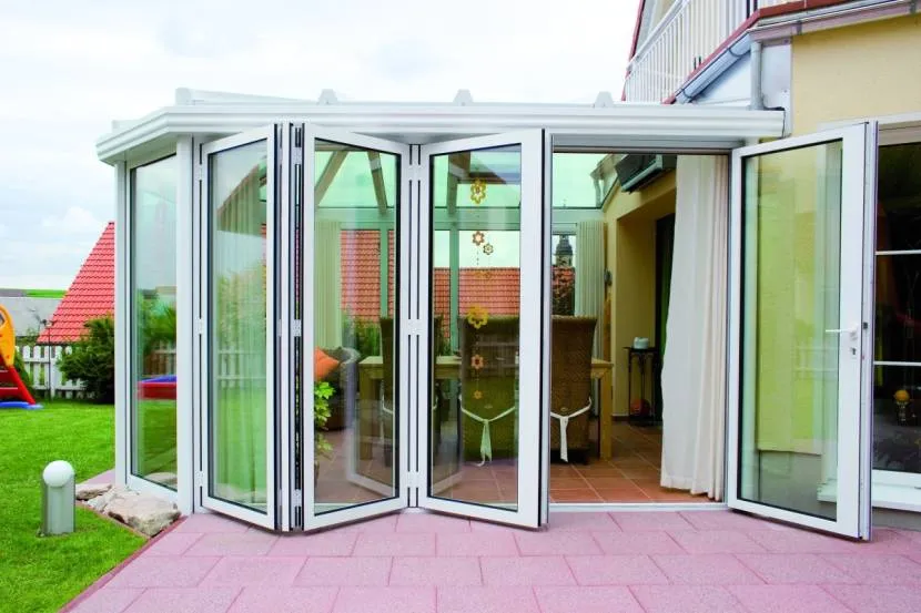Складные-сдвижные. В отличие от предыдущих видов система достаточно необычная в исполнении и состоит из нескольких створок. По способу открывания данная модель напоминает гармошку, выглядит достаточно стильно и функционально. Если необходимо, можно полностью открыть проем или же закрыть его, защищая веранду от ветра, пыли или дождя. Если было принято решение установить такой тип конструкции, тогда стоит помнить, что она обладает низкими теплоизоляционными качествами и устанавливается либо как межкомнатная, либо же как дверь на теплое время.