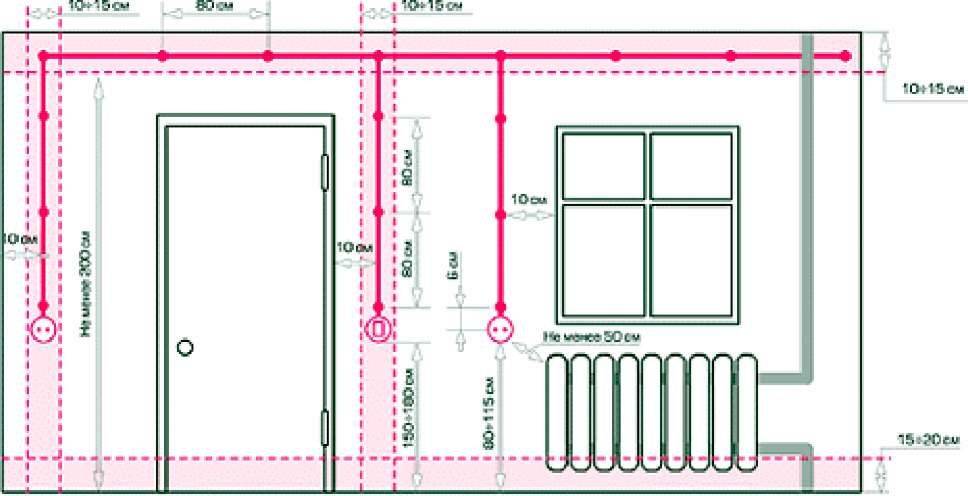- Разметьте места прокладки проводки. Убедитесь, что все кабели пролегают по прямой, а места изгиба составляют прямой угол.