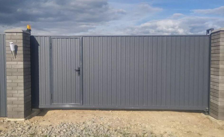 - Проектировать калитку следует еще на этапе изготовления откатной конструкции. В готовое полотно врезать ее будет намного труднее.