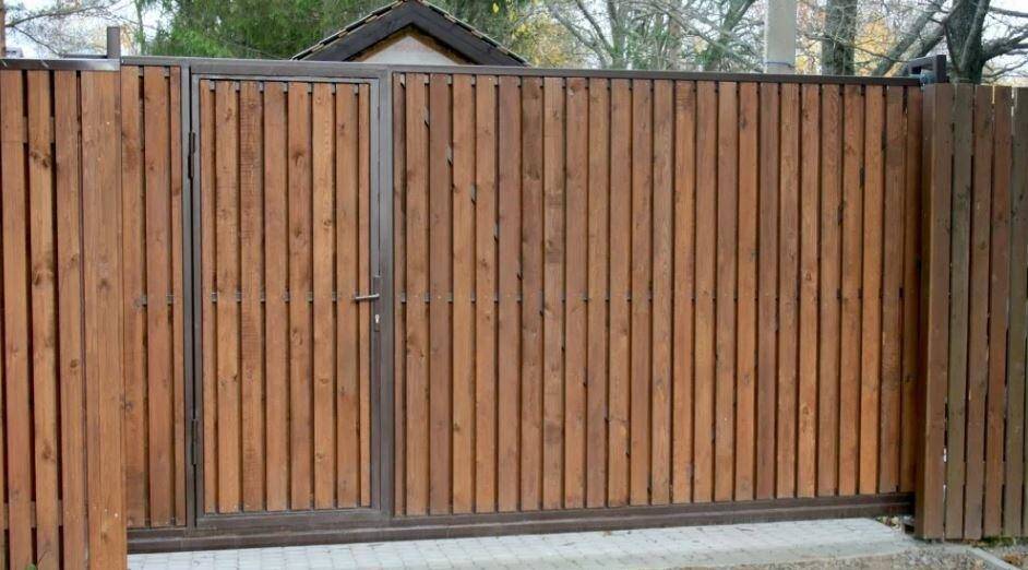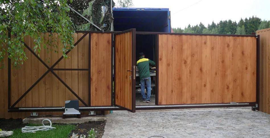 Откатные ворота с калиткой из дерева