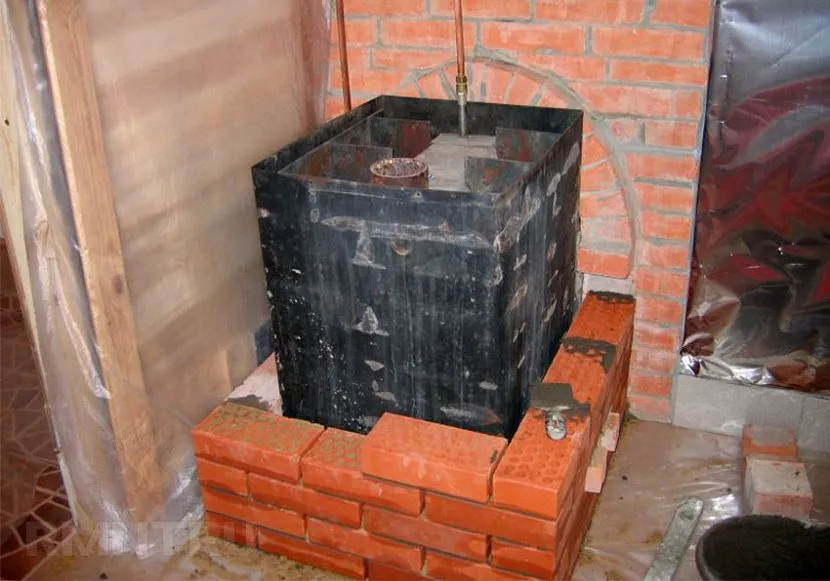 - Выкладка кирпича осуществляется на расстоянии 7-10 см от стен металлической печки.