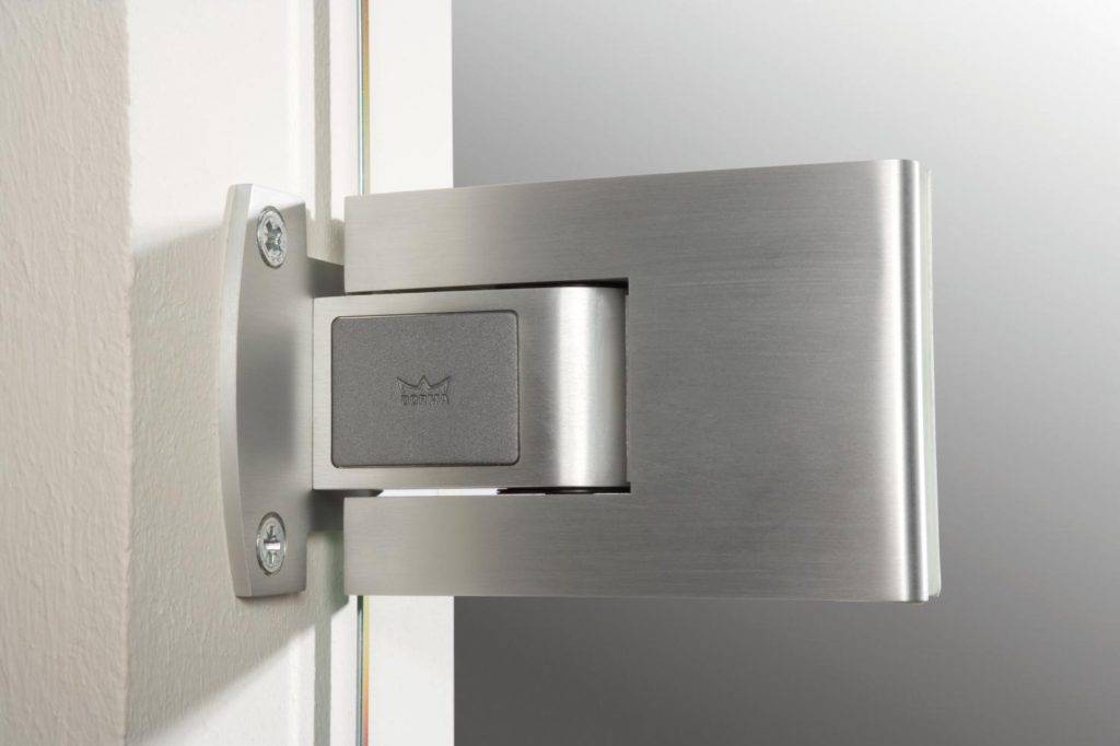 петли с доводчиком. Доводчик для стеклянной петли может быть встроен в конструкцию фурнитуры или установлен дополнительно.