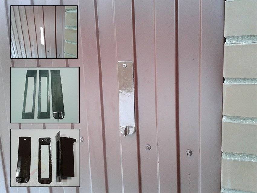 6. С наружной стороны забора делаем заслонку. Выпиливаем вертикальное отверстие в профлисте забора. Из металлической пластины толщиной 1,5 мм изготавливаем обкладки на щель и саму заслонку. Фиксируем заслонку с помощью самореза в верхней ее части к обкладкам на щели. Заслонка сдвигается влево или вправо, тем самым открывая вход в щель, через которую поступает почта.