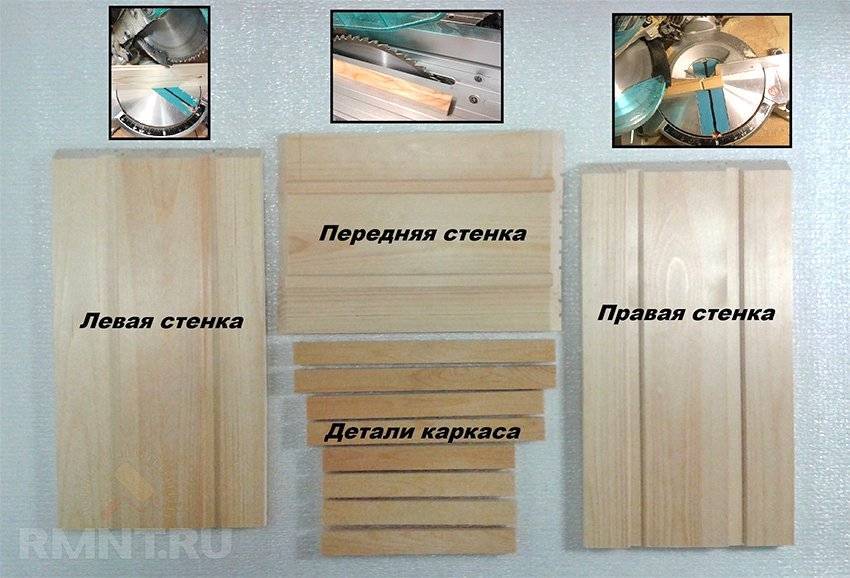 - Габариты стенок зависят от желаемых размеров будущей конструкции. Для работы понадобится разрезать брус на несколько частей так, чтобы вышло 4 рейки, соответствующих длине конструкции, 4 укороченных детали – под ширину и 4 шт. под размер высоты боковых стенок.