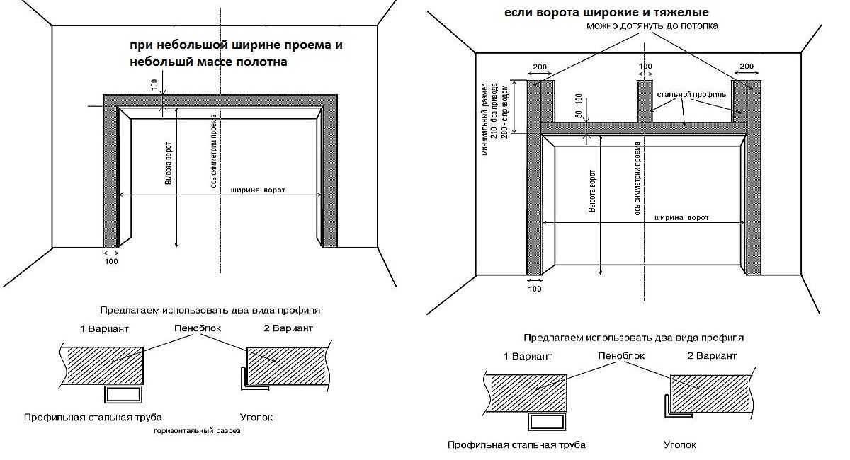 Варианты подготовки проема для установки ворот с разной высотой гаража