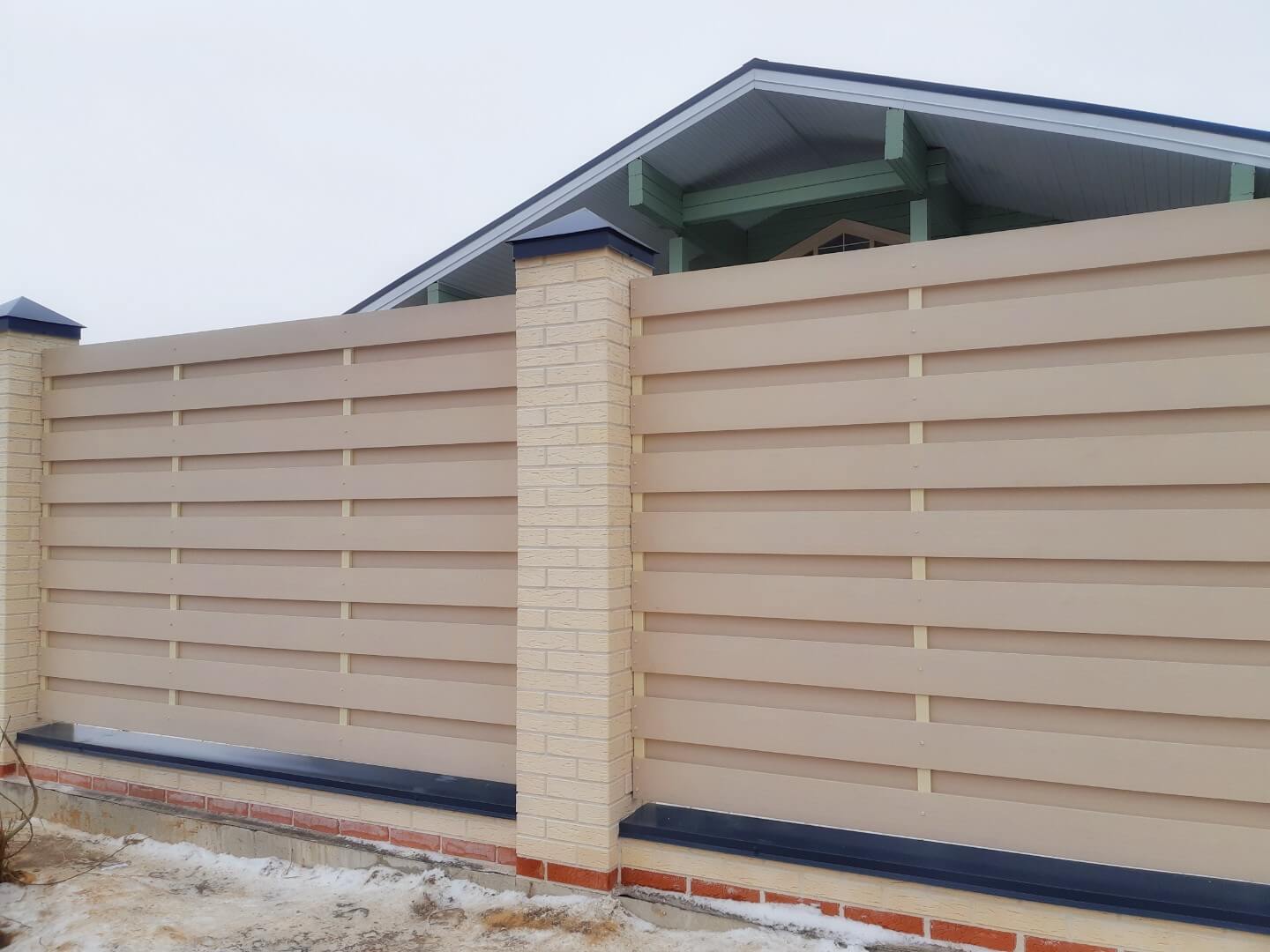 Полимерный забор — это ограждение из модульных элементов, изготовленных из термопластичного древесно-полимерного композита (ДПКТ). Это современный материал, выполненный в виде продолговатых панелей. Из него можно собирать ограждения разных форм и видов, располагая элементы в любом положении.