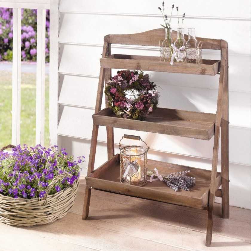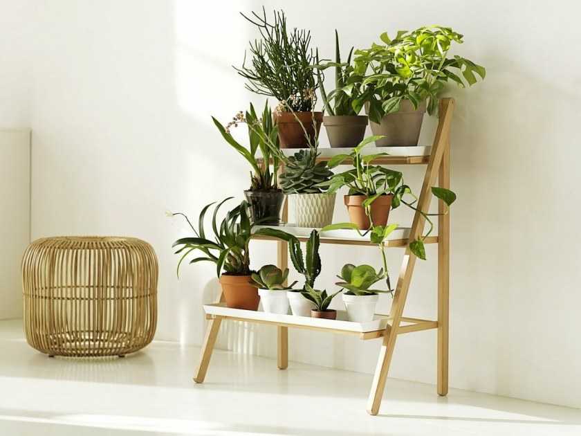 Стильно расположить цветочные горшки с комнатными растениями поможет простое и функциональное приспособление – этажерка своими руками с раскладным механизмом.