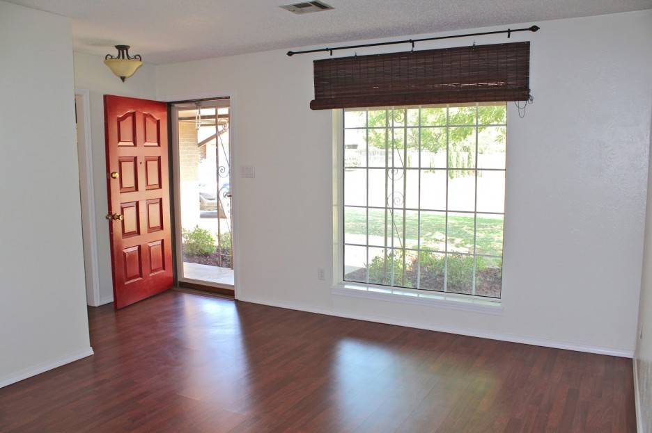 Коричневый ламинат в большой гостиной