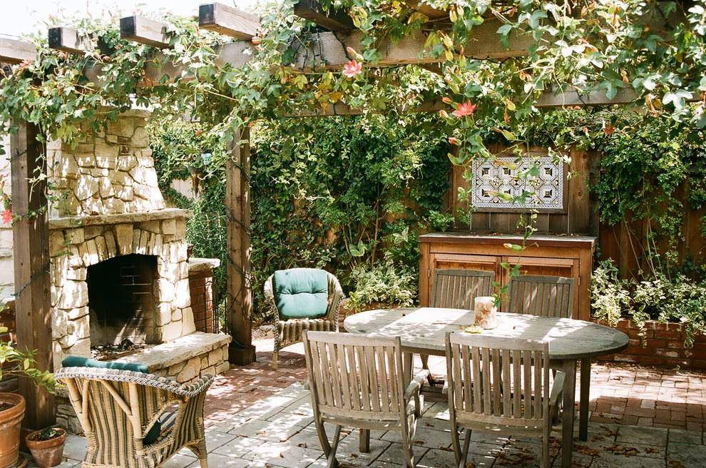 Вьющиеся растения и декоративные панно отлично дополнят интерьер летней кухни и сделают ее еще более уютной