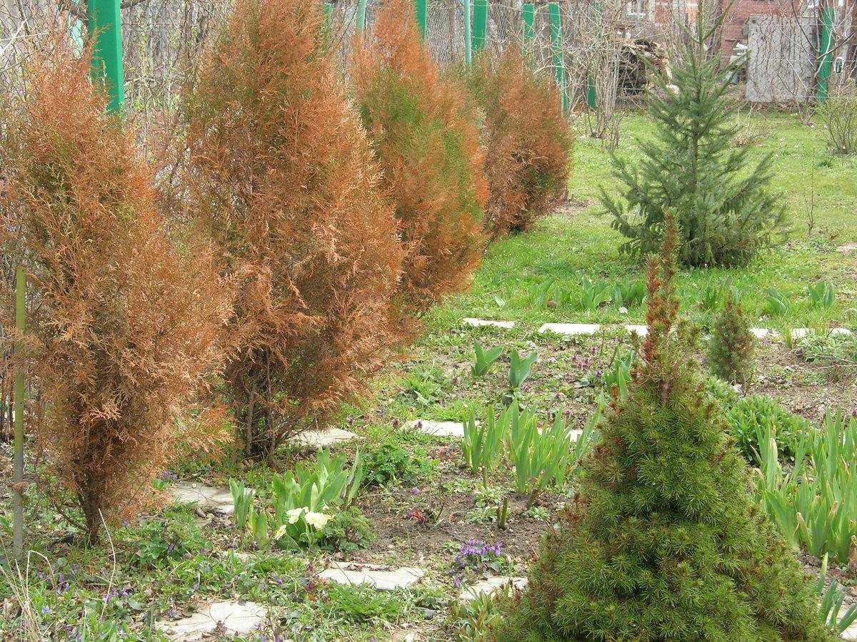 Что делать, если туя пожелтела после зимы? Прежде чем приступать к активным действиям, нужно найти причину пожелтения зеленых веточек и побегов, их может быть несколько: