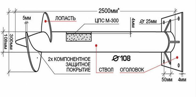 - К минимуму свели и диаметр лопастей, а так как толщина ствола пропорционально зависит от этого размера, то и он стал меньше. В новом формате, далёком от идеала, свая, наиболее часто применяемая в малоэтажном строительстве, имеет размеры 300/108 (диаметр лопасти/диаметр ствола) с толщиной стенки 4 мм. Кстати, такие параметры винтовых опор в западных странах просто недопустимы.