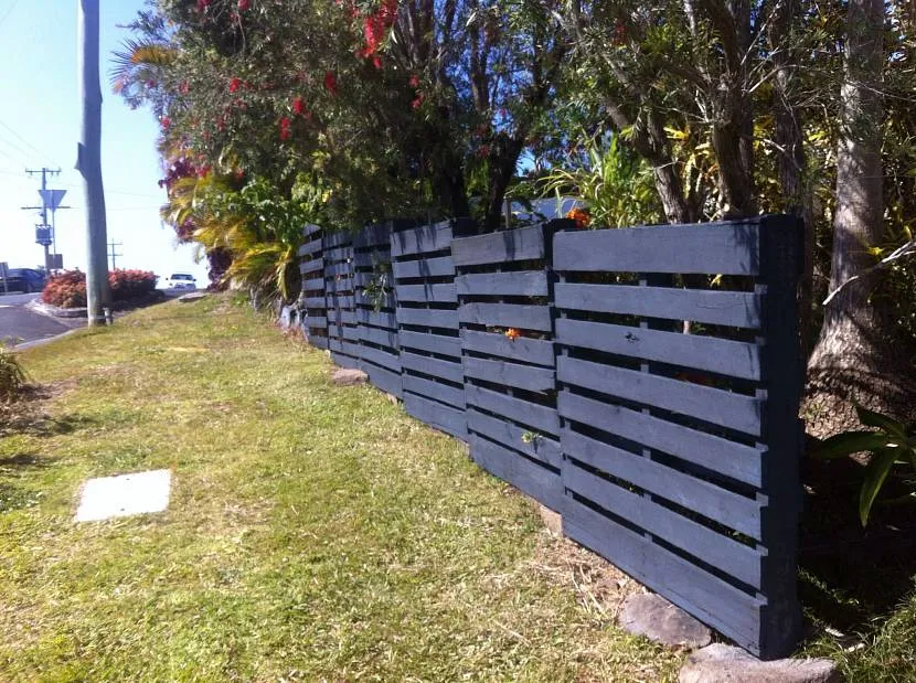 Есть и такой формат, как заборы из поддонов. Для тех же европаллет используют исключительно обрезную доску хорошего качества. Причем поддоны можно разбирать на доски, но можно применять и как готовые щиты.