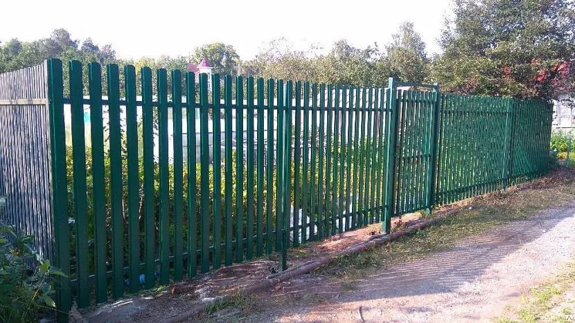 Просвет между рейками не нормирован, и чем он больше, тем дешевле забор. С учетом ранее действовавшего норматива, обычно длину рейки берут около 140 см, чтобы в сумме с просветом возле земли высота забора была 1.5 м. Понятно, что защитные свойства такой ограды невысоки, и она служит лишь для разграничения участков.
