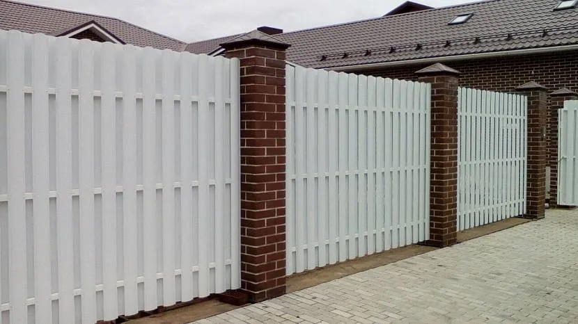 Белый двойной штакетник на кирпичной основеИсточник забор56.рф