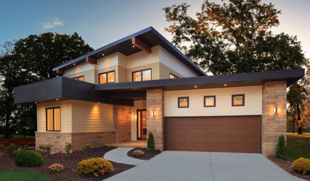 К современным стилям относится функционализм и конструктивизм, а также минимализм, хай –тек, авангард и эко-стиль. Для дома с гаражом под одной крышей все эти направления подойдут практически идеально.