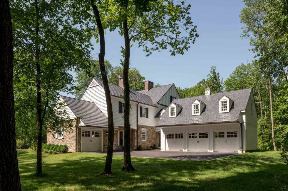 Классический и английский стиль предполагает симметрию, поэтому при таком выборе гараж лучше обустроить в подземном или цокольном этаже. В противном случае, если справа от дома будет пристроен гараж, придётся делать такого же типа помещение слева и использовать его, например, под хозяйственные нужды. Однако, если в вашей семье две машины – это наилучший вариант.