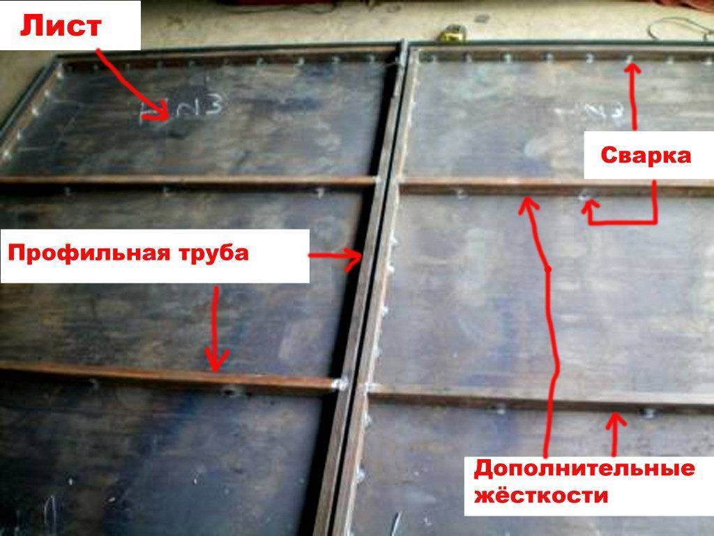 Рамки и усиления делаются из профильной трубы 40х20 мм, после крепления полуавтоматом привариваются еще петли