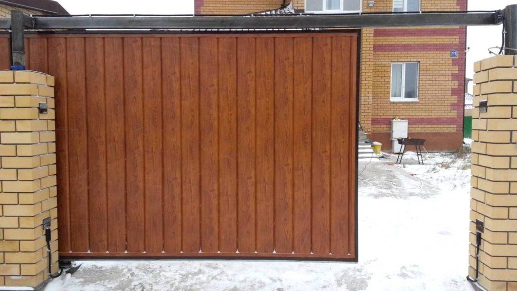Минус изделия – в зимнее время нужно тщательно очищать их от снега, а в осеннее от листвы. Для монтажа направляющих необходимо пространство вдоль забора, чтобы полотно открывалось без ограничений