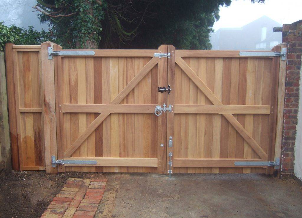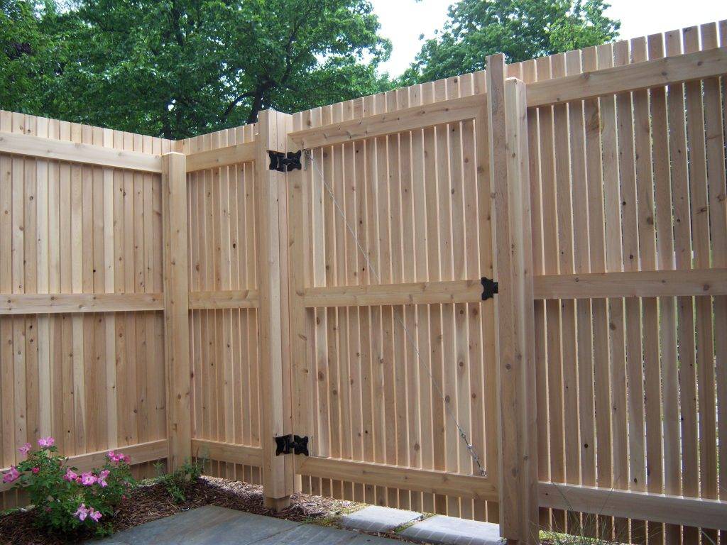 Для дачи подойдет легкая деревянная конструкция – самая дешевая. Она гармонично сочетается со стилем летнего домика, окружающей природой, закрывает двор от любопытных сплошной обшивкой. Сделать ее легко всем желающим, достаточно иметь дрель, шуруповерт и время. Из фурнитуры понадобятся только навесы, задвижка и замок.