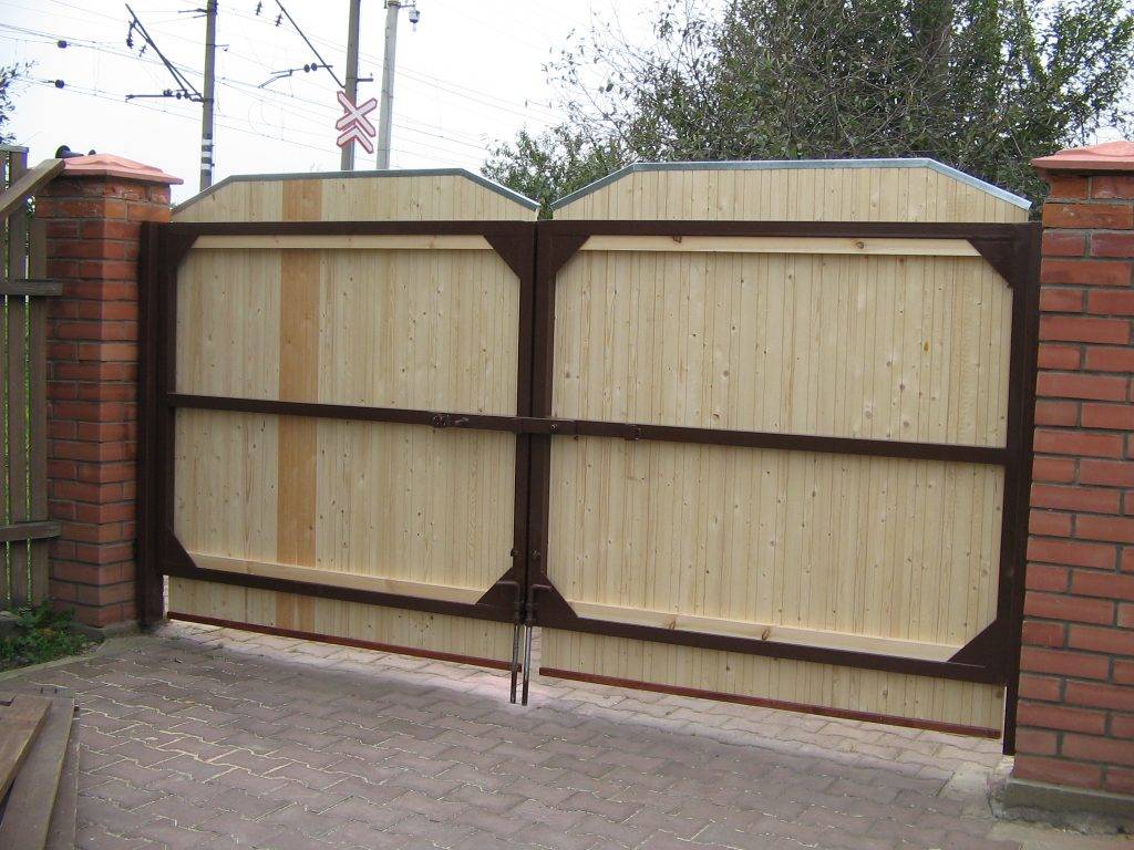 - Створки ворот состоят из рамы, материалом которой может быть как металл, так и дерево. Хотя более популярен все тот же металл, так как он прочнее, надежней и долговечнее.