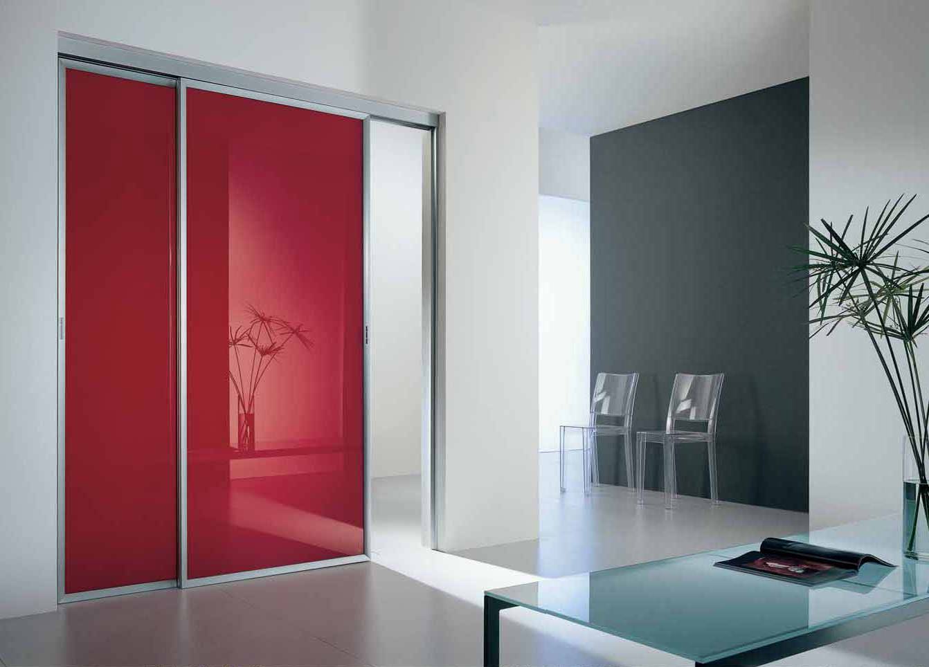 Функцию несущей конструкции для раздвижной двери выполняет специальная направляющая, по которой скользит полотно, опираясь на ролики.