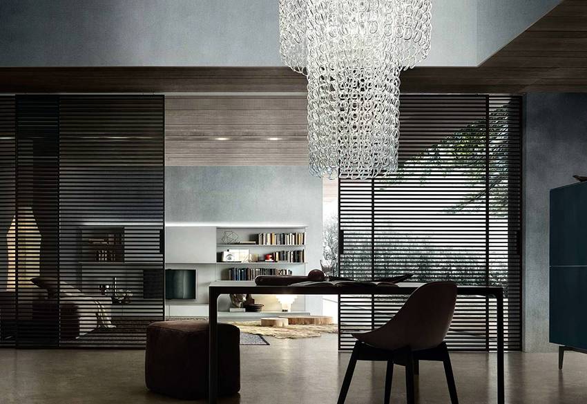 Стеклянные раздвижные перегородки хорошо смотрятся в интерьерах современных стилей